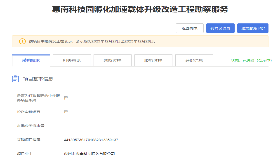 【招標公示】惠南科技園孵化加速載體升級改造工程勘察服務