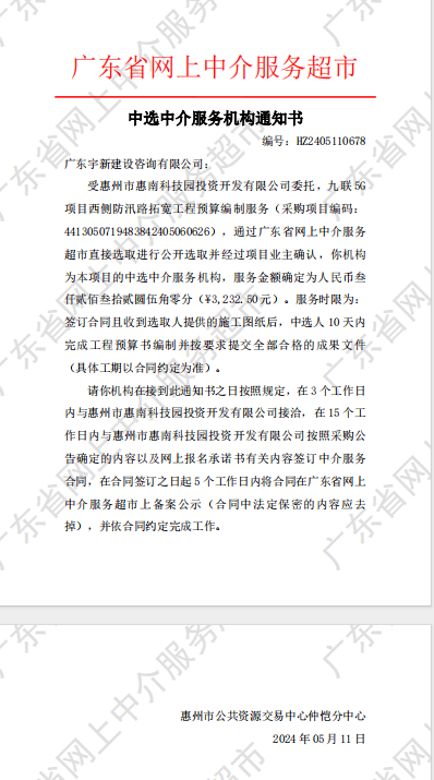 【中選公示】九聯(lián)5G項目西側防汛路拓寬工程預算編制服務