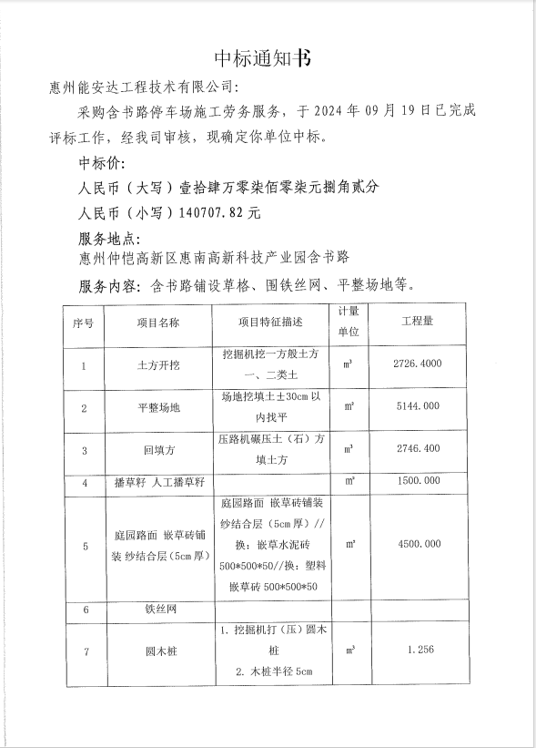 【中標(biāo)通知】采購含書路停車場(chǎng)施工勞務(wù)服務(wù)